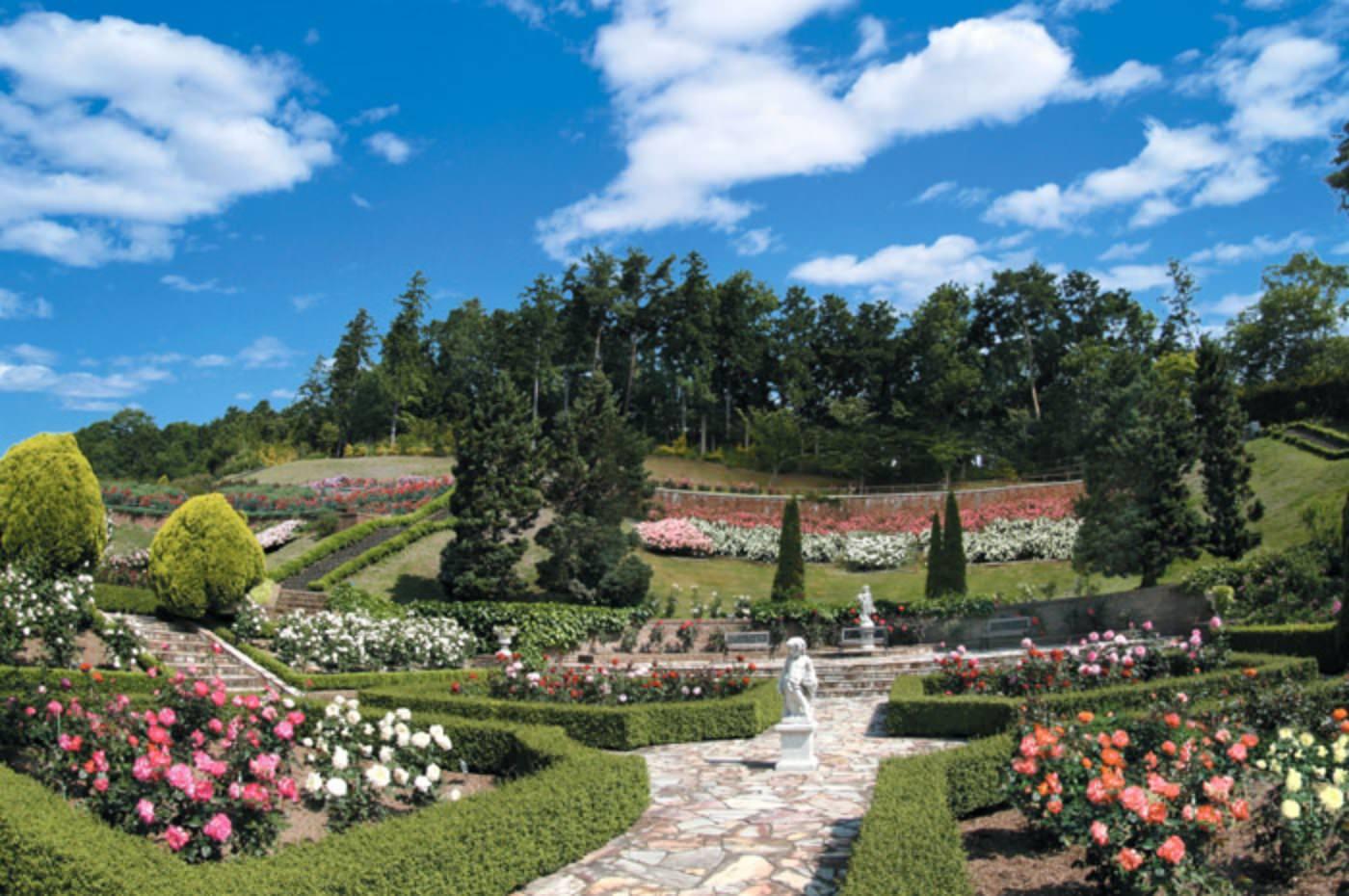 修善寺虹の郷は、西洋の街並みから茅葺き屋根の古民家まで和洋様々な景観を備えています。